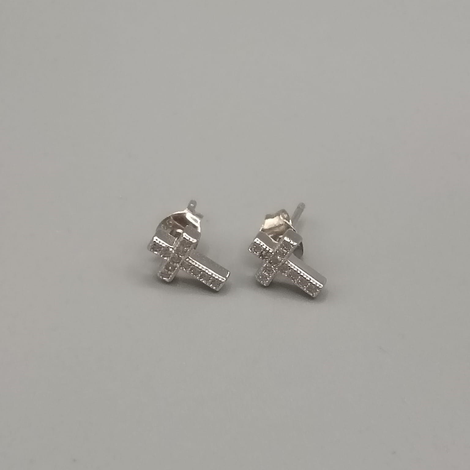Pendiente de plata de ley con cruz montada con circonitas acabado en rodio, un toque elegante y versátil para tu estilo diario. Perfectos para cualquier ocasión.